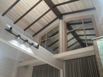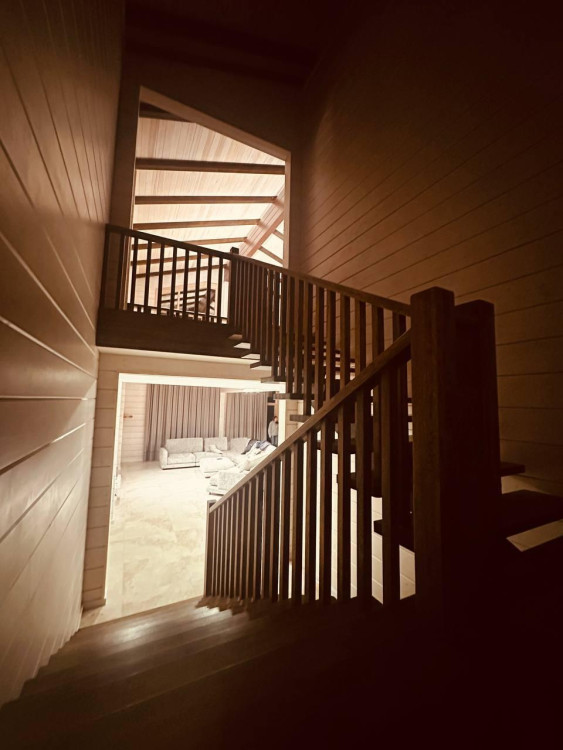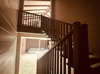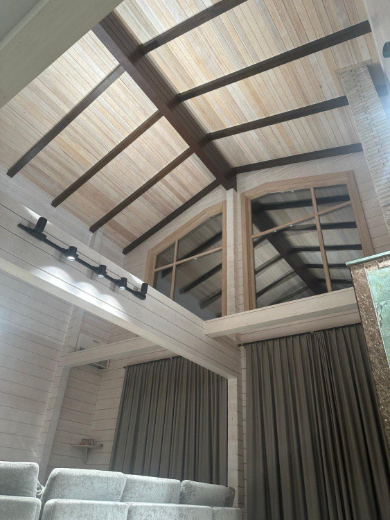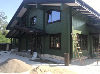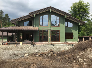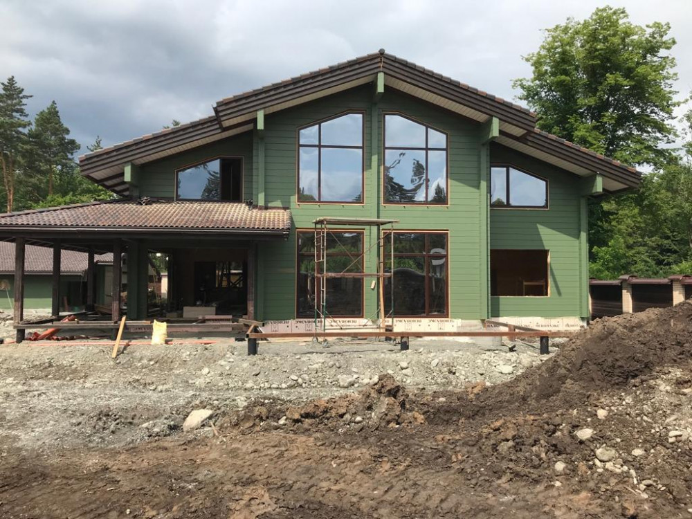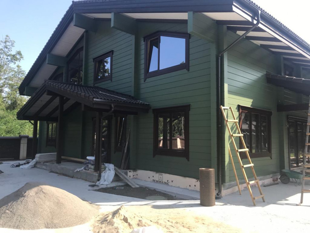 Фундамент - плита Стены - клееный брус 240(h) х 200 Крыша - черепица окна - деревянные евро лиственница с внутренней отделкой