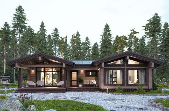 Небольшой одноэтажный дом из клееного бруса, который станет украшением любого загородного участка.